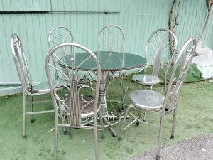 141023 – Bàn tròn mặt inox chân sắt (chân rời)