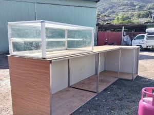 100223 – Quầy góc L kèm tủ kính nhôm