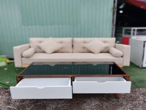 ĐN Bàn sofa nâu hộc trắng New